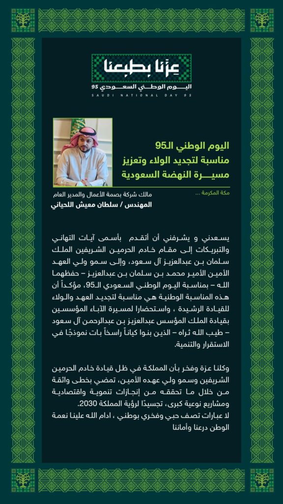 اليوم الوطني السعودي 95: بصمة الأعمال تجدد الولاء وتعزز مسيرة النهضة